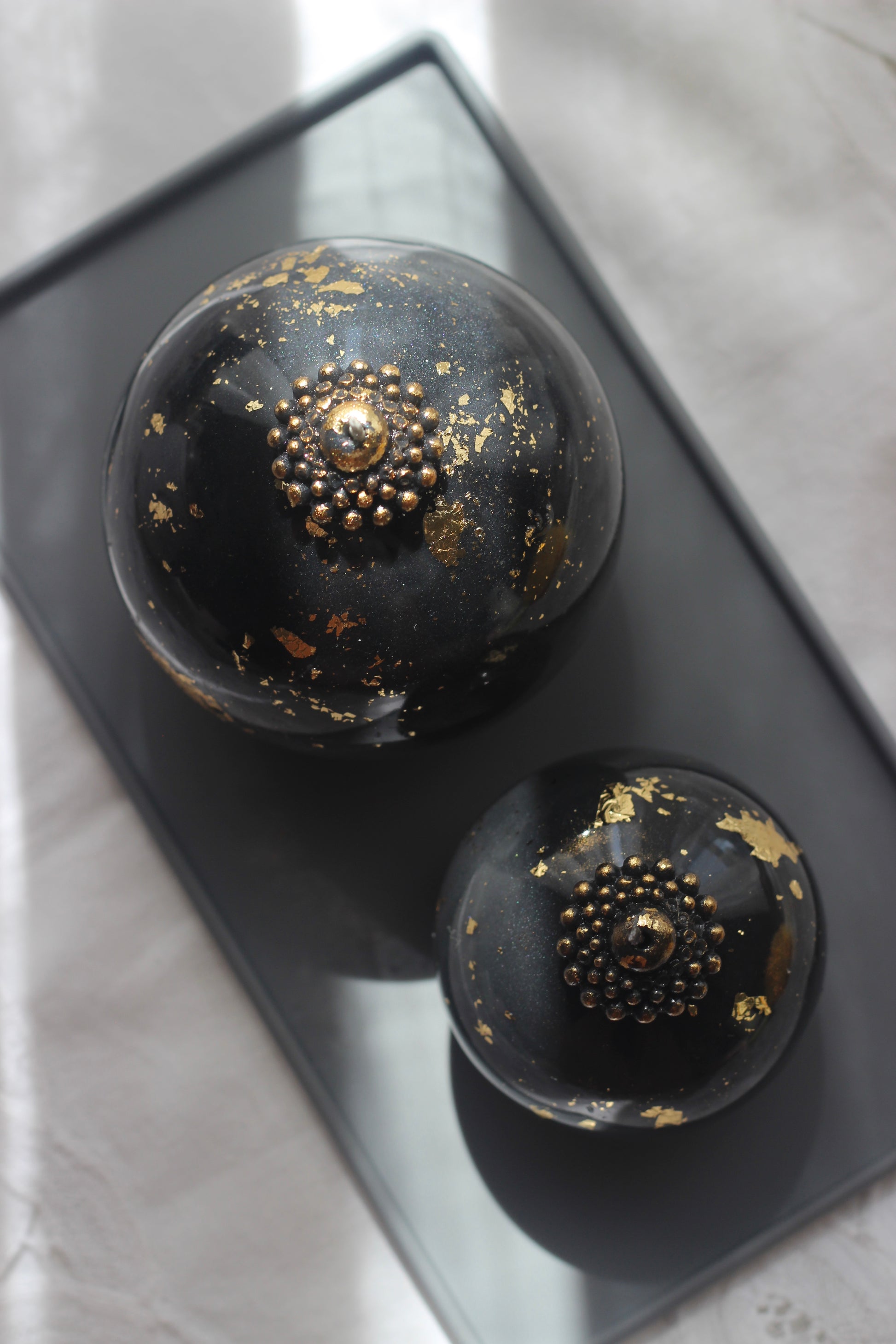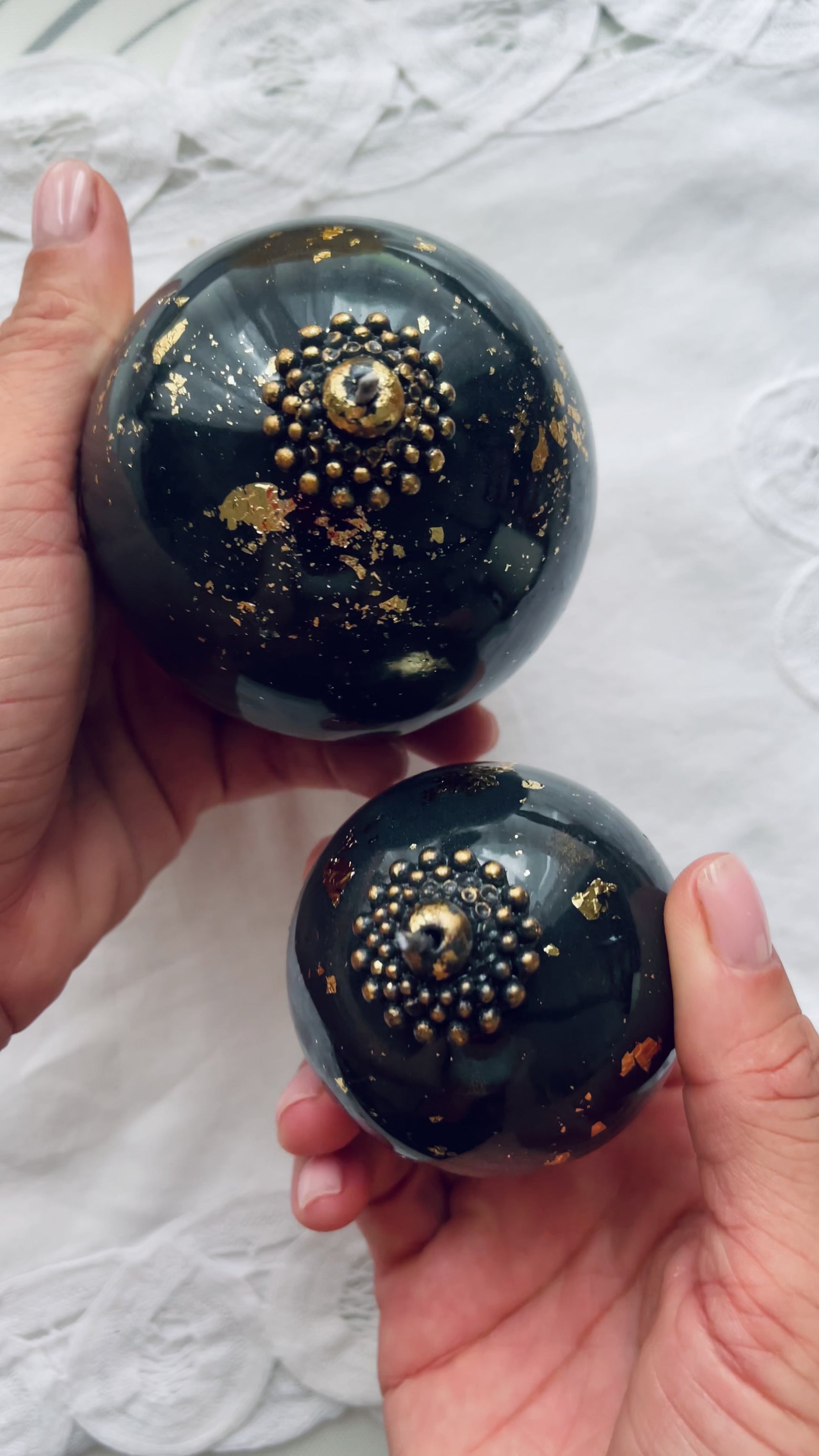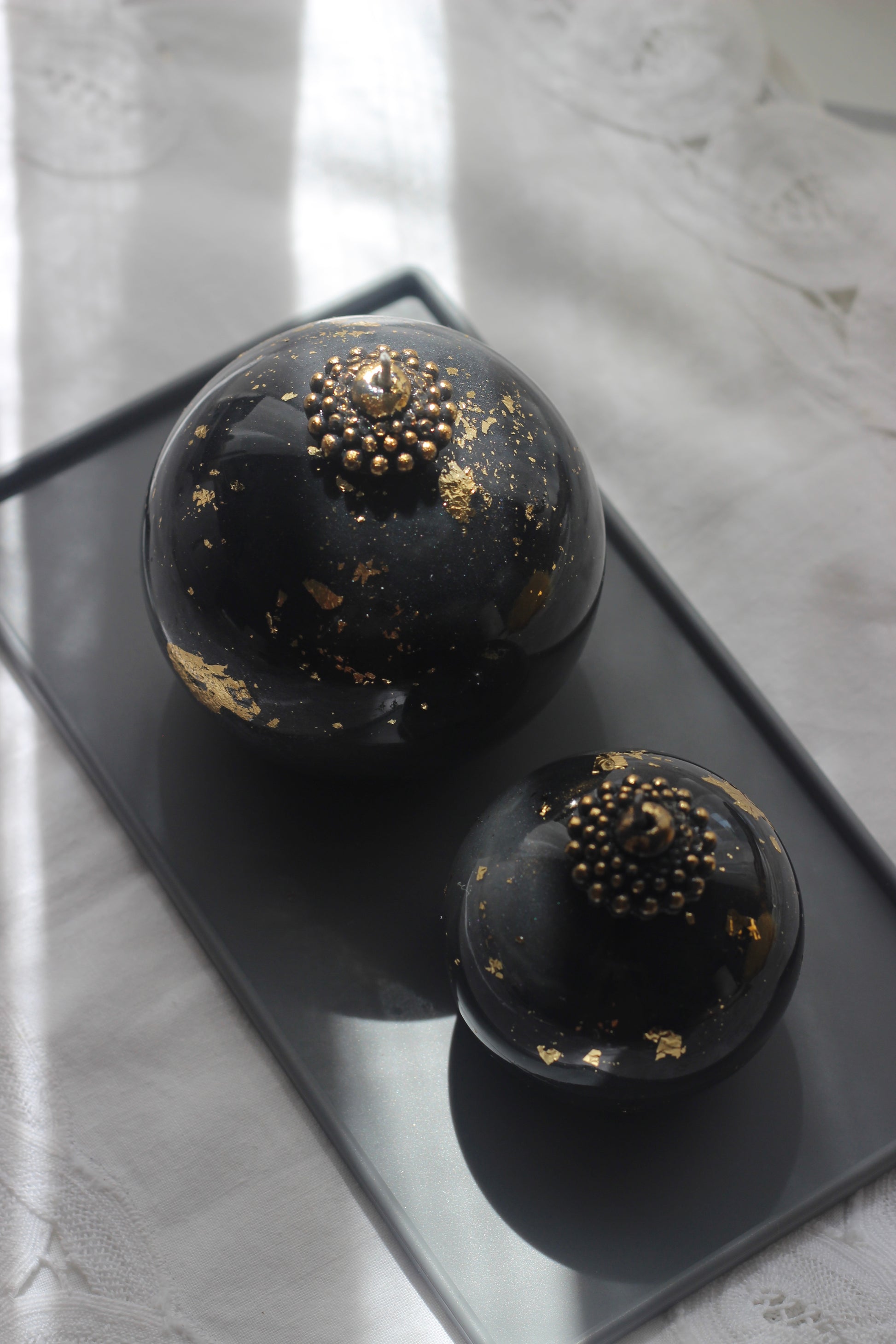 Black large and small glossy ball candles - diameter 8cm and 5cm