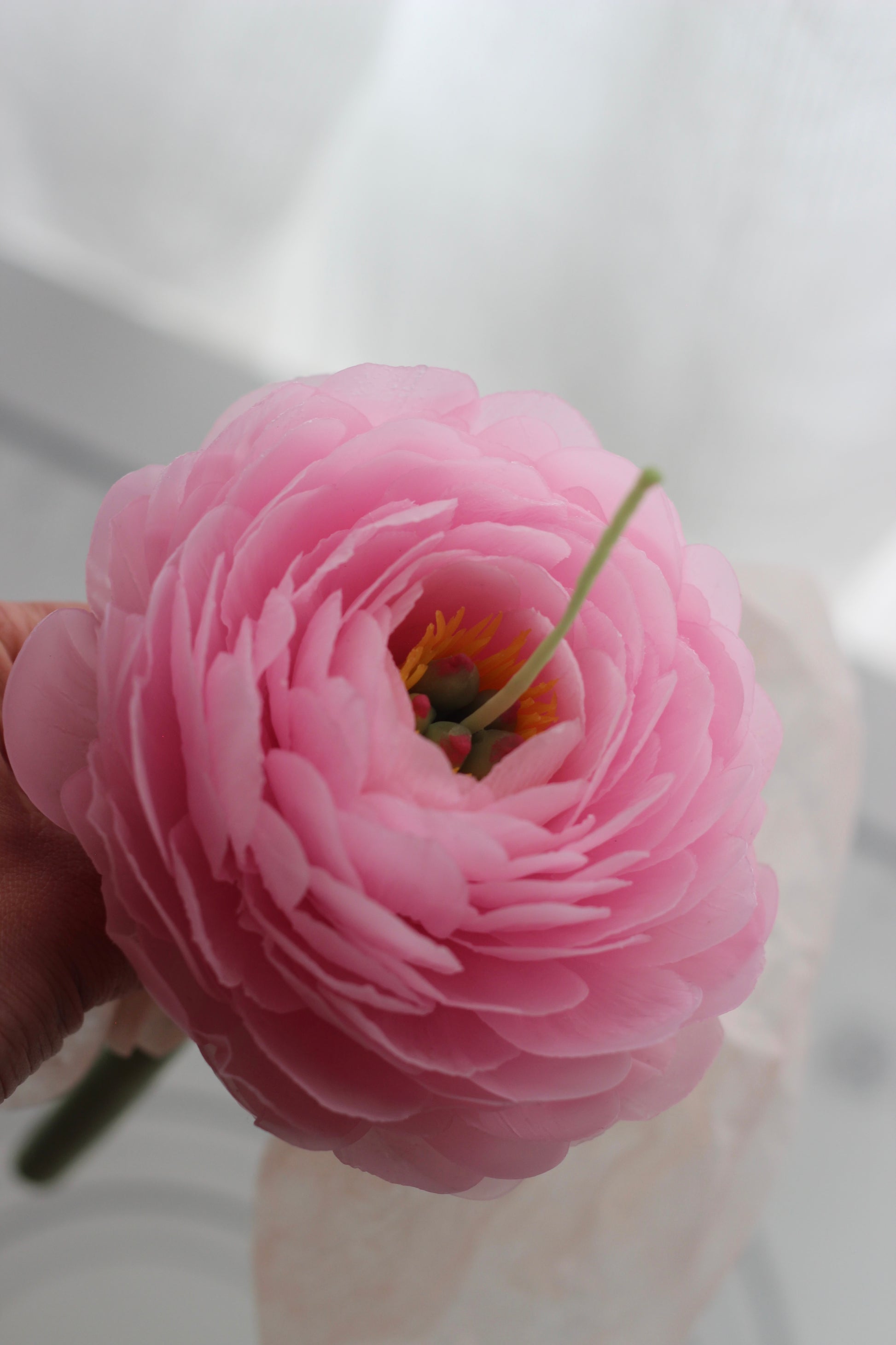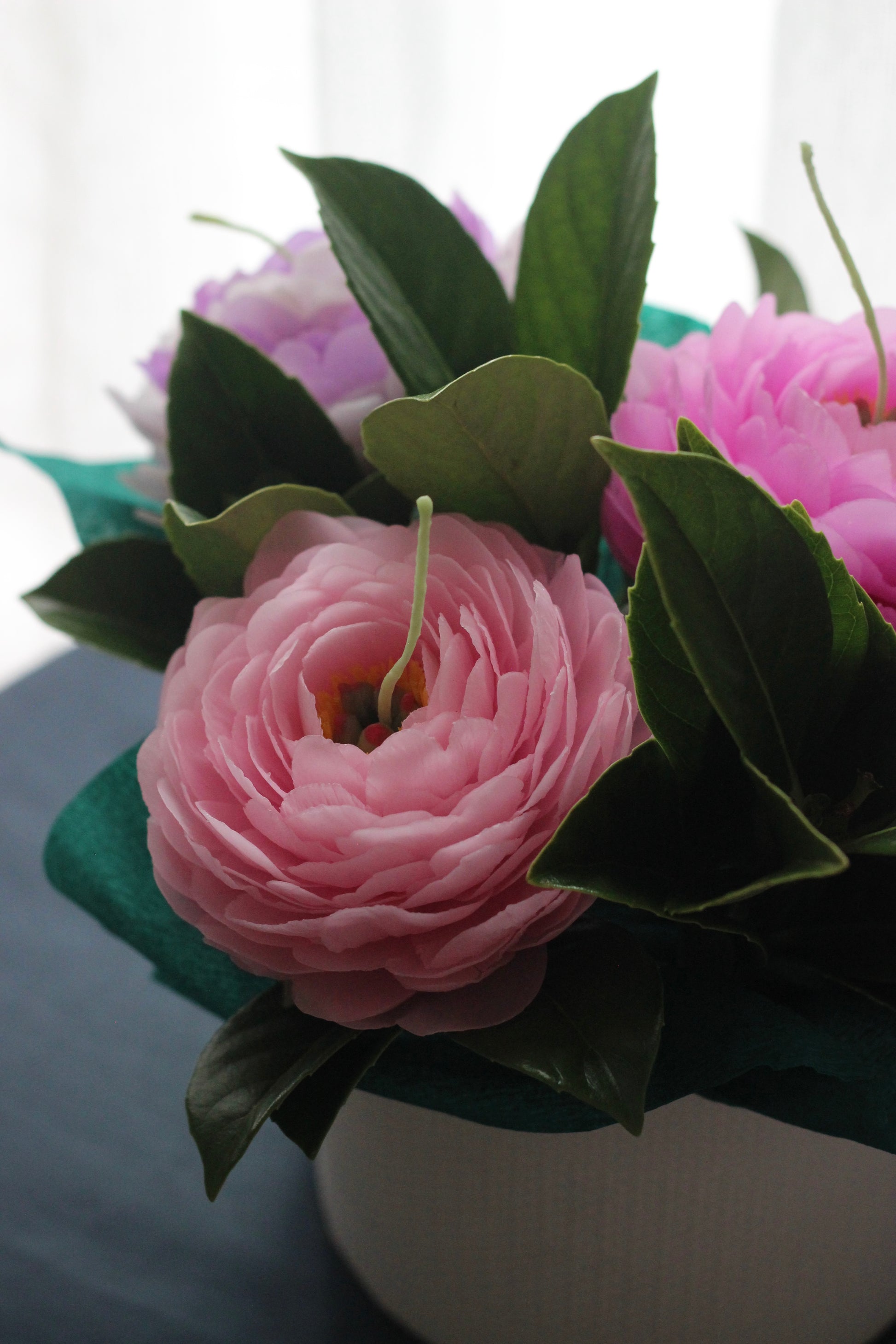 Each petal of Peony is created from thin wax that gives light and transparent look to the flower.